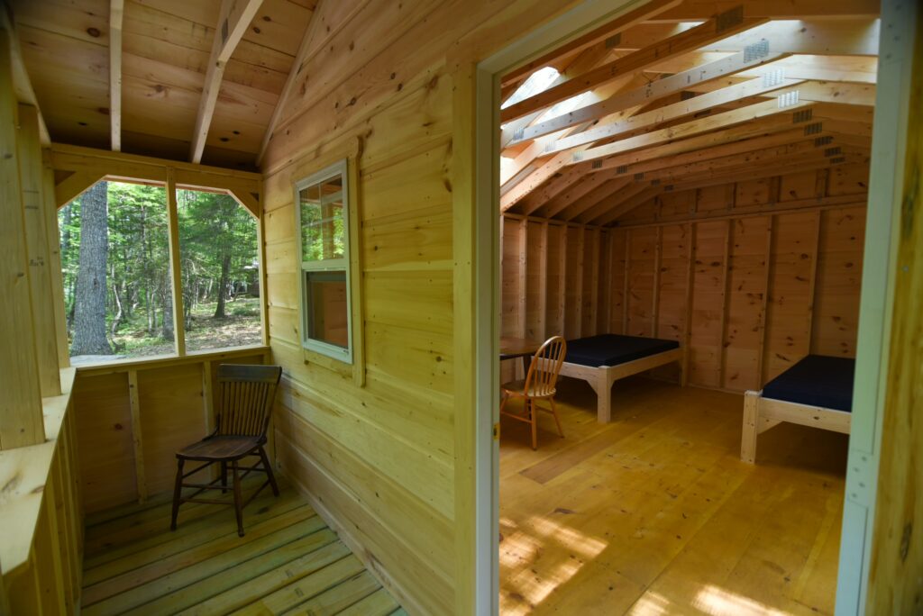 Inside POC 1 and 2, there is a bunk bed with a full bed on bottom and twin on top and a small table and chairs. In Caddis Cabin, there are 2 twin beds. Plenty of natural light flows through the cabin thanks to a small section of see-through corrugated roof. There is a small propane heater in the cabins.